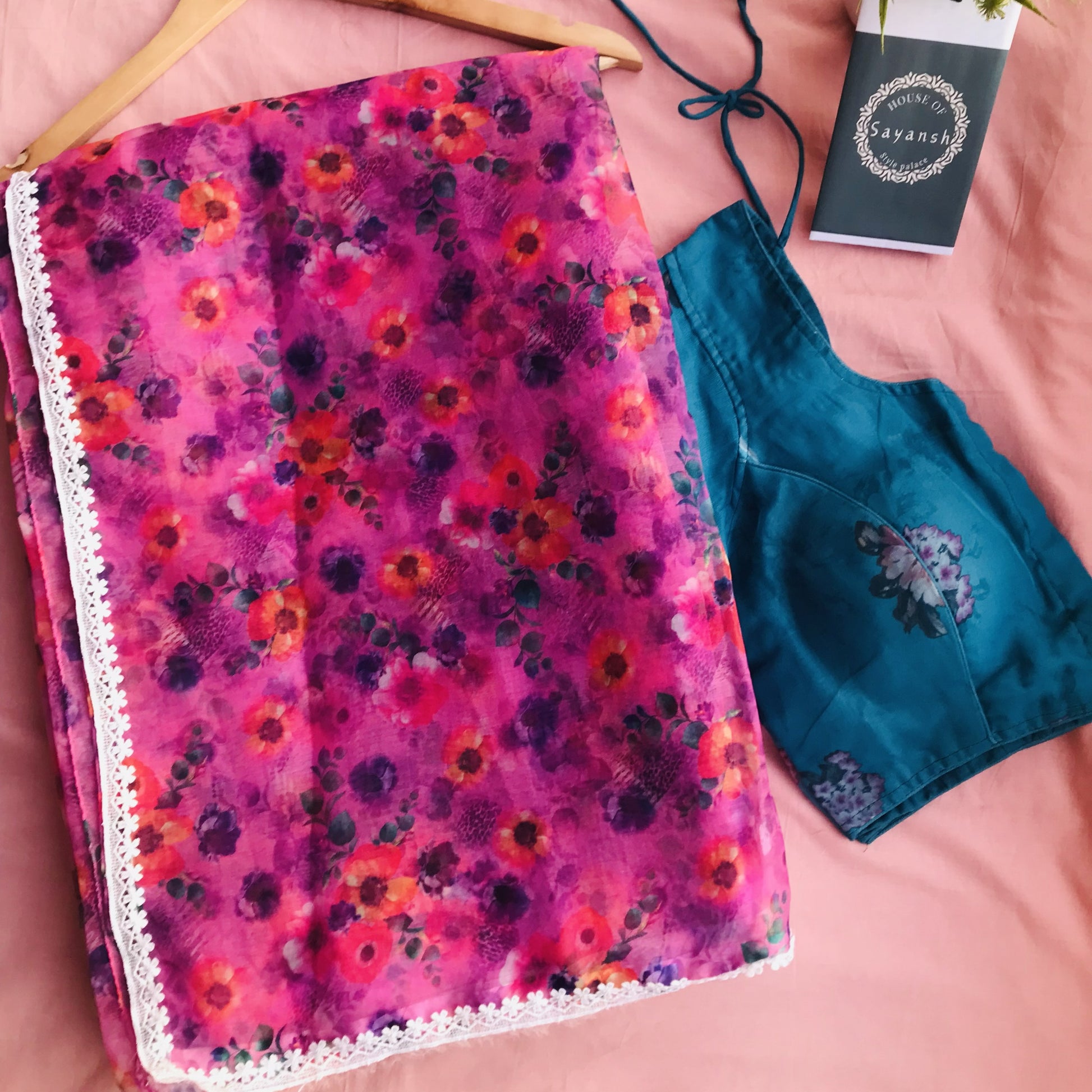 Elevate your ethnic wardrobe with this exquisite organza saree, adorned with an intricate floral print that captures timeless elegance.